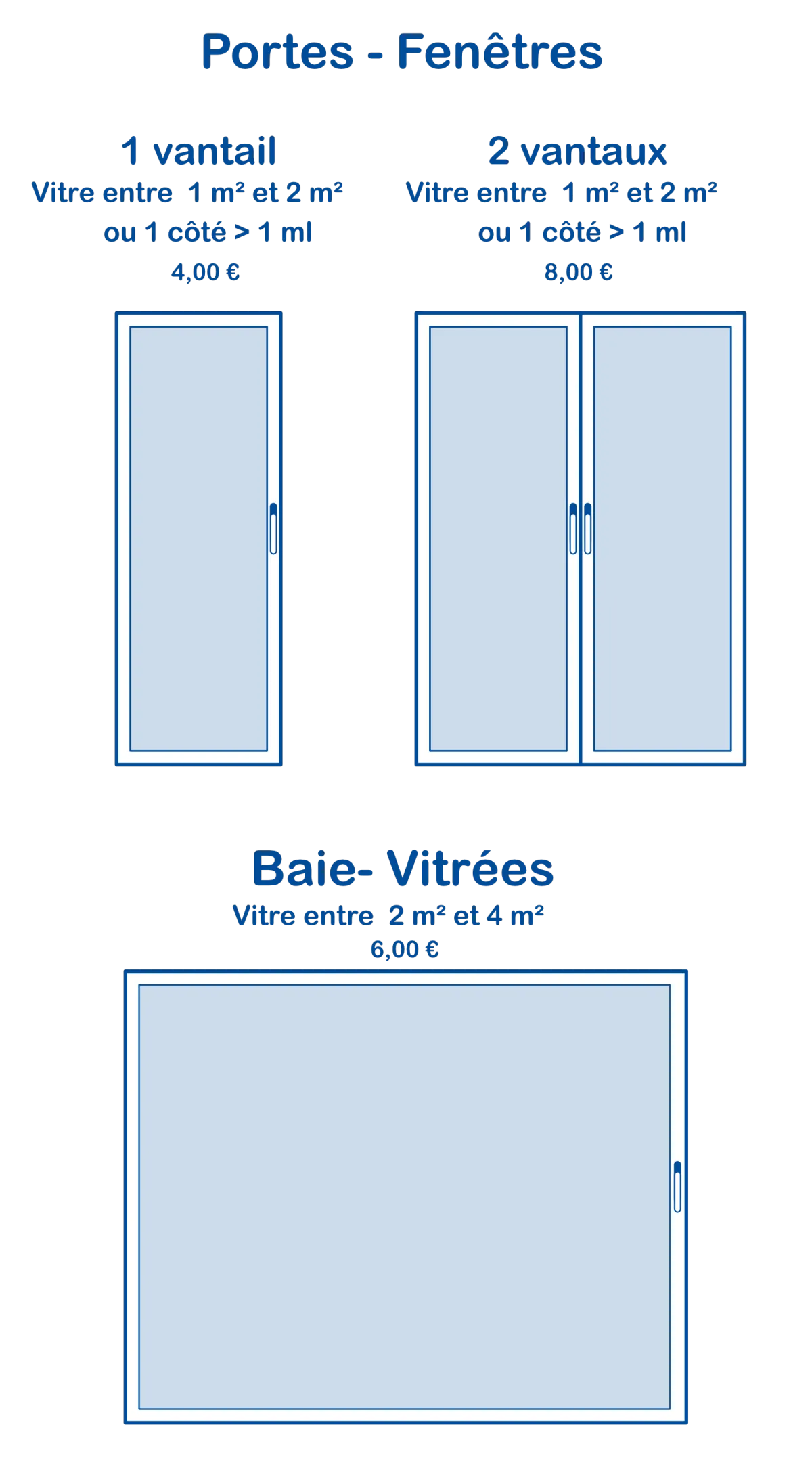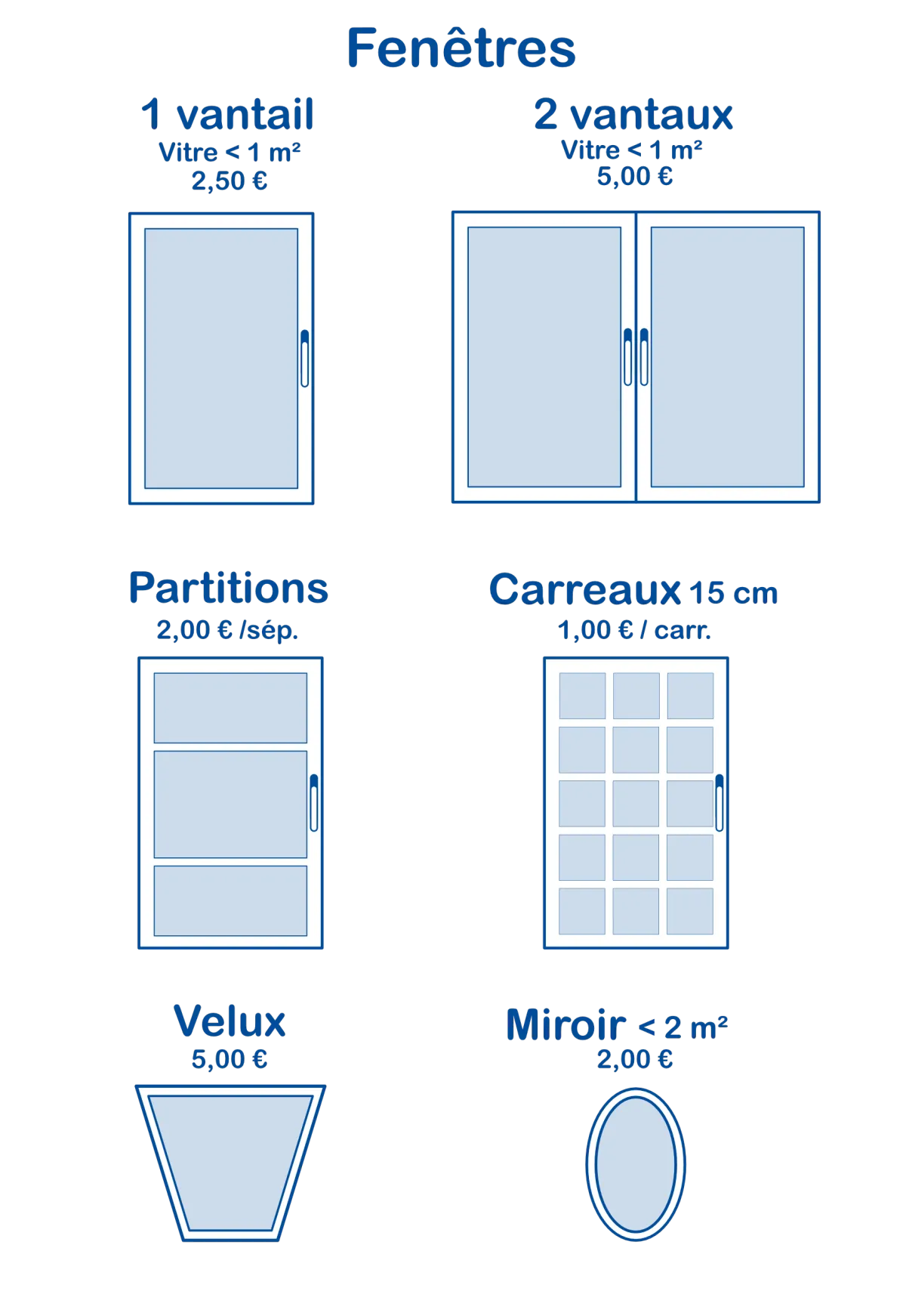 Fenêtre 1 vantail (< 1 m²) : 2,50 €